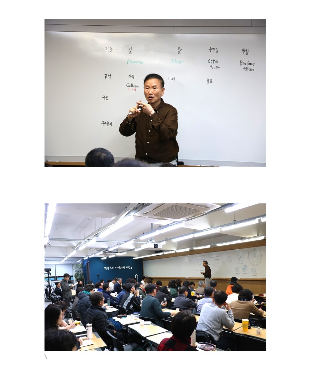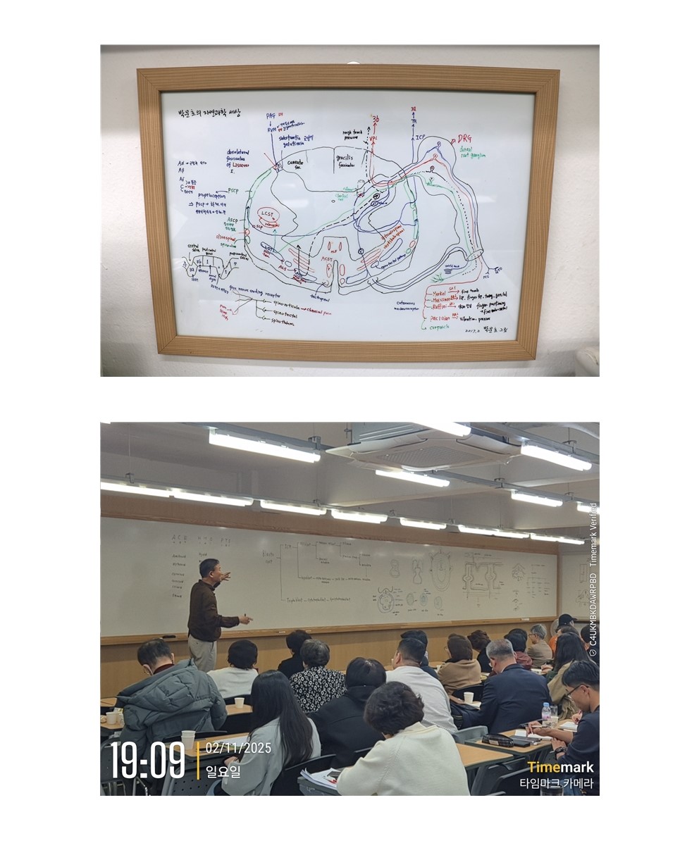 칠판 가득 판서를 이어가며 강의를 이어가시는 박사님과
