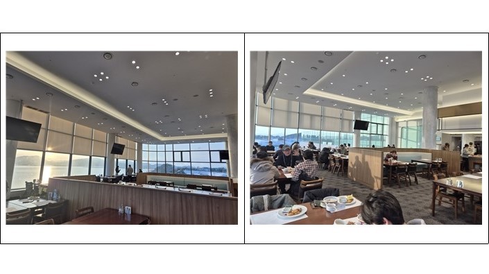 바다뷰가 멋진 리조트 조식당에서 아침을 먹었습니다.