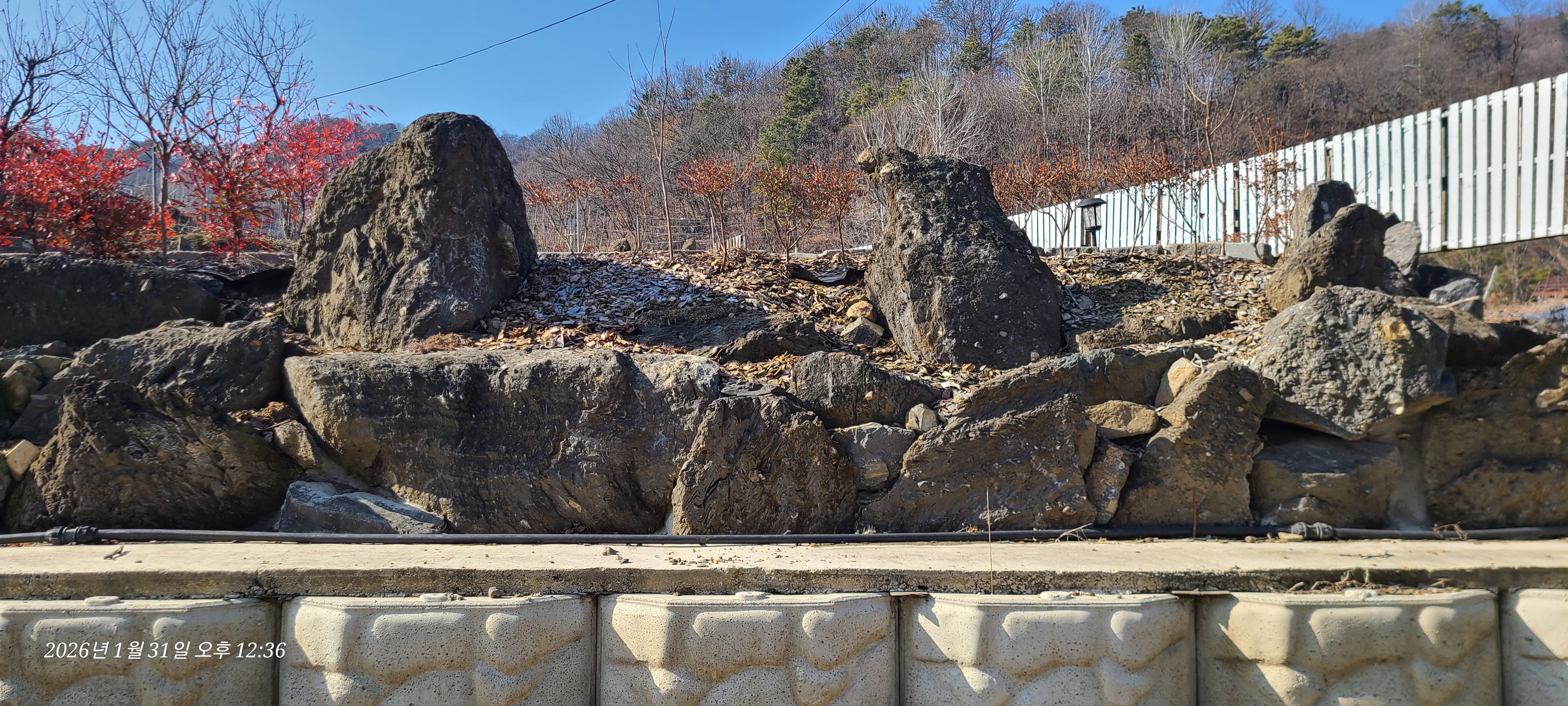 마을에서는 저 돌들을 담벽이나 정원석으로 다수 활용하고 있다.
